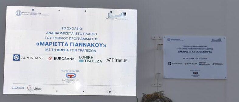 Θα θέλαμε να εκφράσουμε τις ευχαριστίες μας στις τράπεζες που χρηματοδότησαν αυτό το έργο και την ΚΤΥΠ Α.Ε. (Κτιριακές Υποδομές Α.Ε.), η οποία ανέλαβε την υλοποίησή του. Χάρη στη στήριξή τους, το σχολείο μας μπορεί πλέον να προσφέρει καλύτερες συνθήκες μάθησης και δημιουργίας.