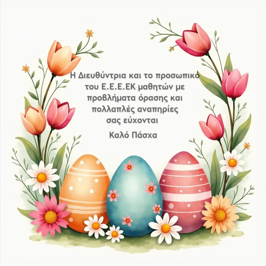 Το Ε.Ε.Ε.Ε.Κ. με Προβλήματα Όρασης και πολλαπλές αναπηρίες σας εύχεται σε όλους Καλό Πάσχα με υγεία, αγάπη και δύναμη!
