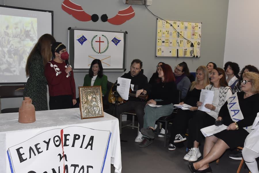 Με ιδιαίτερη χαρά και συγκίνηση πραγματοποιήθηκε και φέτος στο σχολείο μας η εορταστική εκδήλωση για την επέτειο της 25ης Μαρτίου. Η ημέρα αυτή μας υπενθυμίζει ότι τίποτα σπουδαίο δεν κατακτάται χωρίς θυσίες, ενότητα και πίστη σε υψηλά ιδανικά.Οι αγωνιστές του 1821, με θάρρος και αυταπάρνηση, μας κληροδότησαν την ελευθερία που σήμερα απολαμβάνουμε. Είναι χρέος μας να τη διαφυλάξουμε και να την τιμούμε καθημερινά με τις πράξεις μας.
