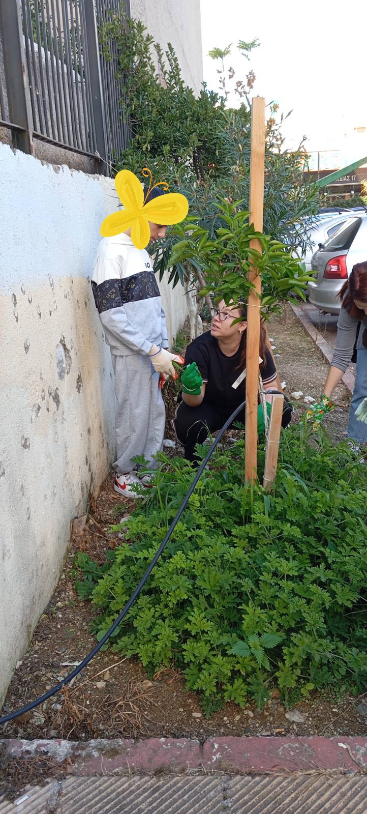 Οι εκπαιδευτικοί (κοινωνική λειτουργός, φυσικοθεραπεύτρια, σχολική νοσηλεύτρια και ειδικό βοηθητικό προσωπικό) μαζί με τους μαθητές/- τριες του σχολείου μας, καθάρισαν ένα κομμάτι του κήπου και ταυτόχρονα δημιούργησαν φυτολόγια με τη βοήθεια της Γεωπόνου του σχολείου μας, κα Ζάχου Ματίνα.