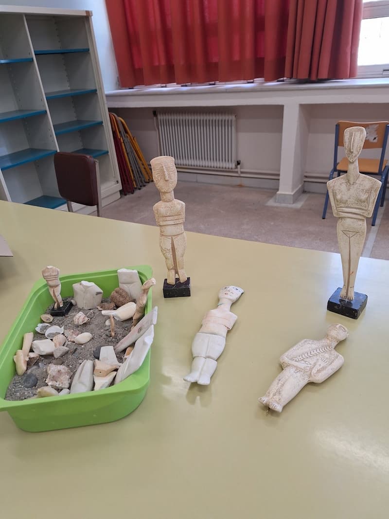 Οι μαθητές μας ήρθαν σε επαφή με διάφορα αντικείμενα και κατασκεύασαν διάφορα ειδώλια από πηλό, ανακάλυψαν τα νησιά των Κυκλάδων μέσα από διάφορες πέτρες σε λεκάνη με