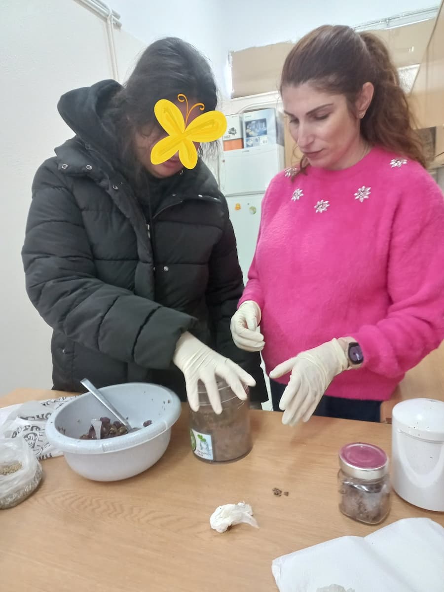 όλη την διαδικασία (συλλογή, διαλογή βρώσιμων ελιών, αφαίρεση κουκουτσιών για την παραγωγή της πάστας, συσκευασία σε αποστειρωμένα βάζα).